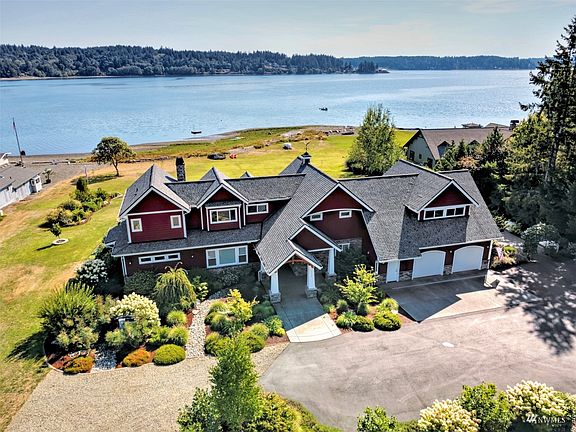 South Puget Sound-Hood Canal area-Waterfront Estate. Blue Heron Beach; a 6-acre, architect designed dream property on pristine Case Inlet. A sweeping lawn from the patio to the beach & Mt Rainier view. The grand home features vaulted ceilings, stone fireplace, french doors, great room style open design. Primary Suite on main level; water view, radiant floor heating in bath, walk in closet, dressing room. Outdoor spaces with covered kitchen & dining areas, outdoor shower. Ohana House ADU (additional 1520 sf) overlooks the water, main house. 36 x 48 Barn/Shop/Garage. Beautifully landscaped grounds, fenced orchard, raised bed gardens, greenhouse. Covered parking for seven vehicles. Work from home opportunity! Easy 30 minutes to Seattle Ferry.