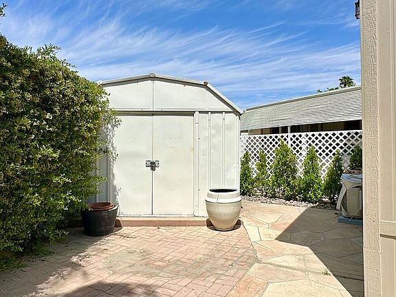Welcome to this brand new Park Model located in the sought-after Desert Shadows RV Resort, a gated 55+ community known for its exceptional amenities and vibrant lifestyle. This charming tiny home offers 1 bedroom, 1 full bath, a versatile loft space, and a private storage shed. Step outside to your very large, beautifully landscaped yard a rare find that adds space and serenity to your desert escape. Inside, the well-designed layout makes smart use of space while offering comfort and charm, making it an ideal full-time residence or weekend getaway. Resort amenities include six pools (including an indoor Olympic and outdoor lap pool), sunken tennis and pickleball courts, a sauna, shuffleboard pavilion, putting green, picnic areas, fitness center, library, hobby rooms, and a stunning 16,000 sq ft ballroom. With two main clubhouses, three satellite centers, and high-speed internet with upgraded cable, you'll enjoy resort-style living at its finest. Don't miss the opportunity to own in one of the desert's most amenity-rich 55+ communities!