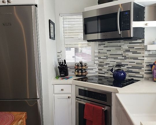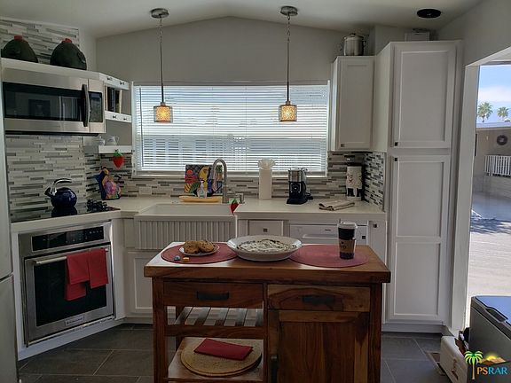The best in Tiny home living located in the sought after Desert Shadows RV Resort. This Park model offers 1 bedroom a California room (2nd bedroom) with Italian Tile floors, full bath, full size Bosh washer and dryer, kitchen with all New High end kitchen appliances and living room with fireplace and 3 flat scree tv's. A manicured private backyard which is maintained by the association along with a huge backyard deck w/fruit trees and hammock. You own the land so there is no space rent. Low HOA's at $280.00 which include, water, sewer, cable, waste disposal, recycling, and landscaping.The Resort is a gated senior community with 460 units. Features of the resort include 2 well maintained club houses & 3 satellite clubhouses, 6 pools, 1 indoor,1 Olympic size lap pool, sunken lit tennis & pickle ball courts, indoor shuffleboard pavilion, 16,000 sq ft ballroom, fully equipped Fitness Center, Library w/WI-FI and broadband, card and hobby rooms, putting green and picnic areas. Financing avai