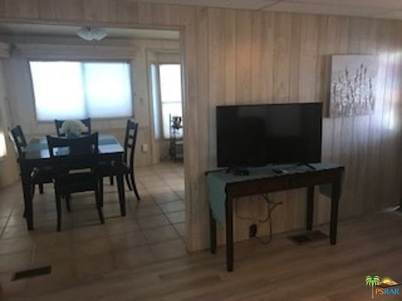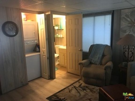 The best in Tiny home living located in the sought after Desert Shadows RV Resort. The Resort is a gated senior community with 460 units. Features of the resort include 2 well maintained club houses and 3 satellite clubhouses, 6 pools 1 indoor,1 Olympic size lap pool, sunken lit tennis and pickle ball courts, indoor shuffleboard pavilion, 16,000 sq ft ballroom, fully equipped Fitness Center, Library with WI-FI and broadband, card and hobby rooms, putting green and picnic areas. This Park Model has been beautifully decorated and very well maintained. This park model offers 1 bedroom and a California room, a washer and dryer inside the unit and nice laminate floors, 2 bathrooms, a kitchen and family room. A nice private yard that is maintained by the association along with a nice big patio deck with some amazing mountain views. You own the land so there is no space rent. Low HOA's at $280.00 which include, basic cable, water, sewer, trash removal and landscaping in and around your yard.
