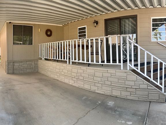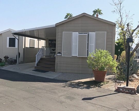Priced to SELL! and YOU OWN THE LAND! Welcome to your new oasis. CUTE home ready for you to move in. This Turn-Key home features beautiful peek-a-boo mountain views. It's conveniently located near the clubhouse. It has a beautiful covered parking and back patio. Features 2 bed, 1 bath, with all appliances included. Property offers A/C unit. Storage shed is beautifully done includes electricity ready, A/C unit, nice windows, storage cabinets & wooden blinds. Community pool, spa, laundry room, & picnic area. A 55+ Friendly Community & Pets Welcome. Amenities Include Basic Cable, Free Wi-Fi, Water, Trash & Recycling Program. Two large Club Houses and three satellite pools, & an indoor pool with large spa & sauna. An Olympic Style 25 yard lap pool, Indoor shuffleboard pavilion, wood working shop, Billiards room, Fitness Center, Card Room, Arts & Crafts Room, and Large Club House. This community is ready to WELCOME YOU!