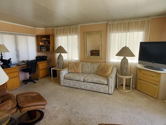 The best in Tiny home living located in the sought-after Desert Shadows RV Resort. The Resort is a gated Senior community with 460 units. Features of the resort include 2 well Maintained Clubhouses and 3 Satellite Clubhouses, Laundry, Restrooms, Sauna & Spa. A Grand Ballroom for events, 6 heated pools, Billiards Room 1 Olympic size lap, Indoor Pool, Spa and Sauna. Sunken lit Tennis and Pickle ball courts, Indoor shuffleboard pavilion, Fitness Center, Library with WI-FI and broadband, Card and Hobby rooms, Dance Studio, Craft Room, Wood Shop, putting green and picnic areas. This Park model offers 1 bedroom a California room, full bath, kitchen. A private backyard with 2 fruit trees and a shed. Landscaping is maintained by the association. You own the Land so there is no space rent. Low HOA's at $280.00 which include, Basic cable, Free Wi-Fi in clubhouse, Water, Trash, Sewer, Recycling program and Landscaping in and around unit. ***Financing available***