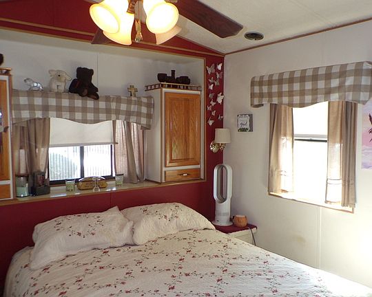 You Own The Land! This Recently Renovated 1988 Park-Model home features 1 bed, 1 bath, with kitchen appliances included, wood flooring throughout and newly toilet installed, mirror sliding closet doors in bedroom & hallway, living room; hallway; and bathroom freshly painted, newly window treatments, plenty of pantry space, ceiling fans in bedroom and living room, private patio/backyard, includes a shed for storage, GOLF CART included with the sale!! This Park Model includes central A/C & heating. Property Sold As-Is, Mostly all furniture included. An Adult Over 55 Community. Amenities Include Basic Cable, Free Wi-Fi, Water, Trash, Recycling Program & Yard Maintenance. Two large Club Houses & three satellite pools, & an indoor pool with large spa & sauna. An Olympic Style 25 yard lap pool, Indoor shuffleboard pavilion, wood working shop, Billiards room, Fitness Center, Card Room, Arts & Crafts Room, Large Club House w/a Commercial Kitchen, Outside BBQ's, Putting Green, & On-site Full Time General Manager.