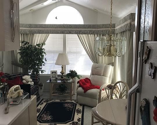 Beautifully maintained and fully furnished manufactured home on fee land (you own the land). This home has a nice outdoor sitting area, a storage shed on the side and a lawn in back that is maintained by the park. The AC is only 2 years old and very efficient. There is also a well maintained golf cart that could be negotiated separately. This 55-plus park has a clubhouse, pools, tennis and all kinds of activities too numerous to mention. Shopping and restaurants are nearby.