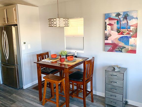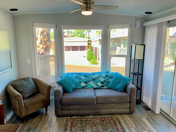 Newly remodeled. Turnkey ready. New stainless steel appliances. Sofa sleeper with full mattress, orthopedic queen mattress, walk-in shower, washer and dryer. Large patio deck and backyard with barbecue Close to the main clubhouse 40 inch TV in living room 25 inch TV in bedroom Throughout Sound Five burner stove with convection oven Patio furniture and table Double door refrigerator with ice maker Outdoor grill Please call owner to discuss.Month to month or lease available for long-term. Senior complex 55 and over unit is furnished