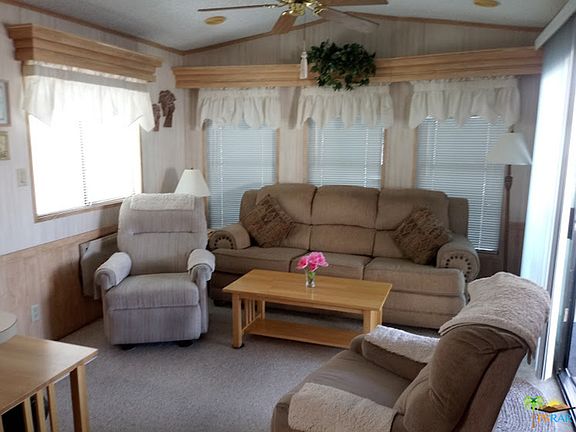 The best in Tiny home living located in the sought after Desert Shadows RV Resort. The Resort is a gated senior community with 460 units. Features of the resort include 2 well maintained club houses and 3 satellite clubhouses, 6 pools 1 indoor,1 Olympic size lap pool, sunken lit tennis and pickle ball courts, indoor shuffleboard pavilion, 16,000 sq ft ballroom, fully equipped Fitness Center, Library with WI-FI and broadband, card and hobby rooms, putting green and picnic areas. This Park model offers 1 bedroom full bath, kitchen with newer kitchen appliances and family room and a large wrap around deck. A manicured private backyard which is maintained by the association. You own the land so there is no space rent. Low HOA's at $280.00 which include, water, sewer, cable, waste disposal, recycling, and landscaping. Financing available.
