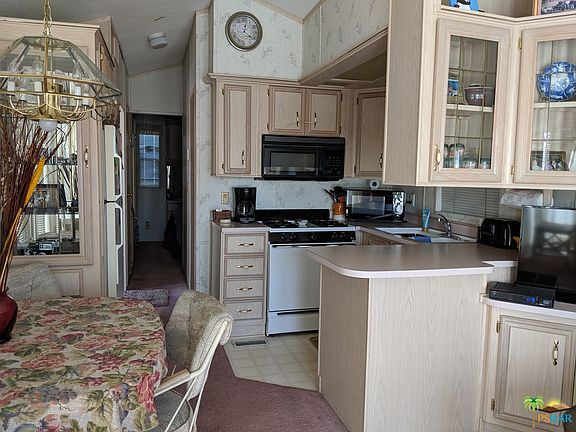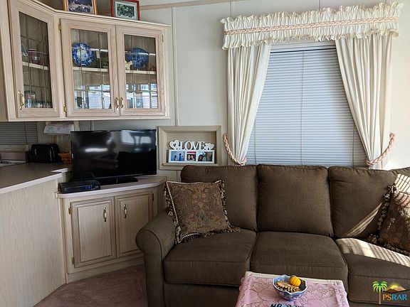 The best in Tiny home living located in the sought after Desert Shadows RV Resort. The Resort is a gated senior community with 460 units. Features of the resort include 2 well maintained club houses and 3 satellite clubhouses, 6 pools 1 indoor,1 Olympic size lap pool, sunken lit tennis and pickle ball courts, indoor shuffleboard pavilion, 16,000 sq ft ballroom, fully equipped Fitness Center, Library with WI-FI and broadband, card and hobby rooms, putting green and picnic areas. This Park model offers 1 bedroom, laminate floors, full bath, kitchen and family room. paved backyard which is maintained by the association along with a deck. You own the land so there is no space rent. Low HOA's at $280.00 which include, water, sewer, cable, waste disposal, recycling, and landscaping. Financing available