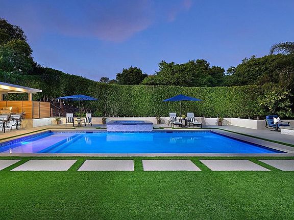 An Entertainer’s Paradise in the Coveted Gated Community of La Costa Ridge! Welcome to an extraordinary residence that blends luxurious indoor-outdoor living with cutting-edge upgrades and timeless sophistication. This exceptional estate showcases a fabulous floorplan, featuring five en-suite bedrooms—including a convenient first-floor guest suite, a home office, dual staircases, and a 4-car garage. The newly reimagined backyard is nothing short of spectacular—a private resort crafted for unforgettable entertaining and ultimate relaxation. A gorgeous pool and spa take center stage, flanked by a covered outdoor kitchen/BBQ island equipped with Top-of-the-Line Lynx appliances. The fire pit with beautiful blue shimmering fire glass is the perfect place to gather. Cantina doors create a seamless transition to the expansive covered loggia for covered alfresco dining. Inside, the heart of the home is a chef’s dream kitchen—rich espresso cabinetry, elegant granite countertops, custom stone backsplash, oversized island/breakfast bar, a new SubZero refrigerator, a professional-grade 6-burner cooktop with griddle and double ovens. The formal dining room opens to a private side courtyard via French doors. Upstairs, the luxurious primary suite is a sanctuary unto itself, featuring a retreat with a fireplace, a balcony overlooking the backyard oasis, and a spa-inspired bath. Meticulously upgraded and immaculately maintained, this home also boasts fully owned solar panels for both the home and pool, three Tesla backup batteries, remodeled secondary bathrooms, new HVAC systems, and a comprehensive whole-house water filtration and softener system. Located within top-tier school boundaries and just minutes to world-class beaches, golf, dining, and shopping, this rare offering presents an unparalleled lifestyle in one of North County’s most prestigious communities.