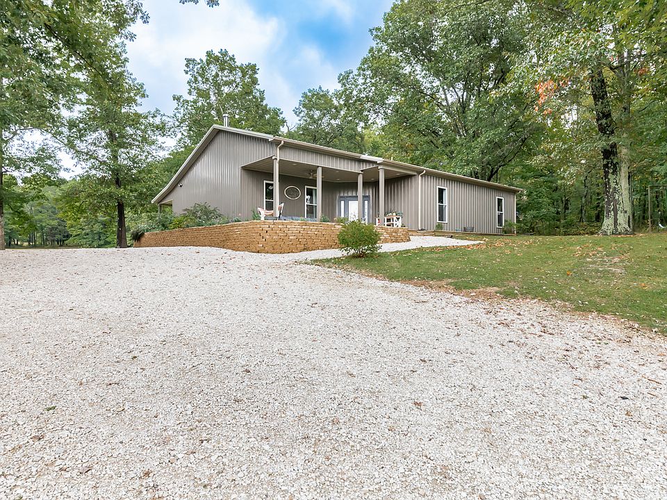 Welcome to country living at its finest! This beautiful 4 bedroom, 2 bath home built in 2018 sits on 11.60 acres with a stocked pond and has everything you've been looking for! Inside you'll love the 10-foot ceilings, walnut counters and trim, solid mahogany wood door, large pantry, tankless water heater, and energy-efficient foam insulation. Relax on the covered front or back porch and take in the beautiful views. The detached pole barn garage is a dream; complete with a car lift on one side and 5 horse stalls on the other, giving you the perfect mix of space for hobbies, animals, or storage. Thoughtfully designed with quality finishes and endless opportunities, this property truly has it all!
