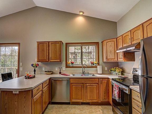 Just in time for summer! Here is an opportunity to own a well maintained and move-in ready home on Crescent Lake. The open concept main level provides cathedral ceilings and beautiful views of the lake. The kitchen features oak cabinetry and there is a double-sided gas fireplace in the great room. The main level also offers a laundry area, two bedrooms, a full bath and a lakeside master suite with a full bath and walk-in closet. Recent updates include new interior paint and flooring. The walk-out lower level is ready for your finishing touches and is plumbed for a 3rd bath. Other features include a 2-car attached garage, deck on the side of the home, new blacktop driveway and a gentle approach to the lake. Crescent Lake is a 626 acre, clear water, full recreation lake providing wonderful opportunities for fishing, swimming and boating. Plan now to spend your summer on the lake!