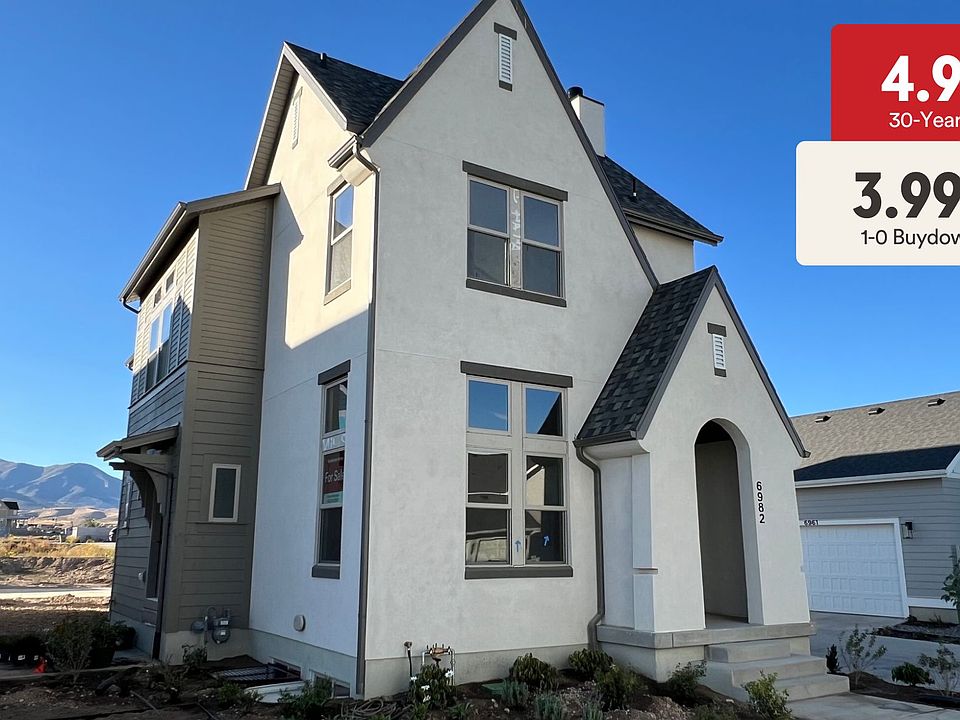 **FULLY FINISHED BASEMENT AND 3.99% RATE BUYDOWN: Qualifies for 3.99% for the first year and 4.99% PERMANENT buydown!! (call agent for details)** Welcome to the Beautiful Roseland! Just steps from Daybreak's newest amenity-the scenic Watercourse-this stunning home offers the perfect blend of space, luxury, and convenience. Sitting on a unique and spacious lot, enjoy an especially large side yard area with a picket fence facing a quiet community courtyard. As you enter, you're greeted by soaring vaulted ceilings in the main family room, creating a bright and open atmosphere. The home features a fully finished basement with a fourth bedroom and third full bathroom, providing flexible space for guests, a home office, or a playroom. Upstairs, enjoy 10' ceilings throughout, an expansive loft for a second family room or game area, a spacious primary suite with a huge walk-in shower, and a dedicated laundry room conveniently located nearby. Plus, with a 2-year builder warranty and a 10-year structural warranty, you'll enjoy lasting quality and peace of mind for years to come! Scheduled to be completed in October-- Model Home Sales office located at: 6656 W Key Largo Way. Buyer and buyer's agent to verify all information.