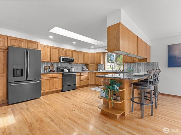 An exceptional property situated on 2.5+ acres this estate features a spacious custom-built rambler paired with a beautifully remodeled 1,200sqft detached ADU w/ 2bed, 1bath perfect for multi-gen or rental income. Primary residence offers a luxe primary suite & 3 additional beds + bonus room! A grand open-concept living & dining area w/ solid oak & carpet inlay floors, custom detailing & a wood-burning stove. Kitchen boasts a generous layout with newer appliances, granite counters & ample storage. Large windows frame tranquil forest views filling the home with natural light. Step outside onto the new expansive TimberTech deck, enjoy fruit trees & the private bar! RV/Boat parking & space for future garage/shop! 5mins to Southworth ferry!