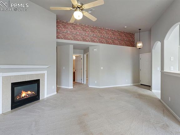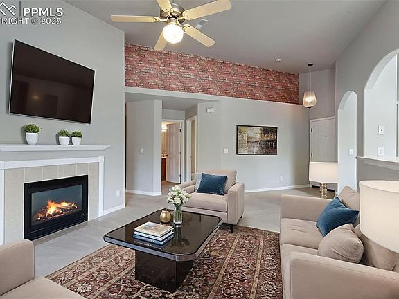Welcome to a lifestyle of convenience and comfort in this inviting second-floor condo, tucked inside a peaceful gated community. With both a private garage and an additional covered parking space, you’ll never have to worry about parking or storage. Inside, the open layout is filled with natural light and anchored by a cozy fireplace—perfect for relaxing after a day out. The kitchen offers plenty of cabinet space, a pantry, and easy flow to the dining and living areas. Each bedroom is its own private suite with a walk-in closet and bath, creating flexibility for guests, roommates, or a home office. Step out to your covered balcony for morning coffee or evening unwinding. Beyond your front door, enjoy community amenities including a clubhouse, pool, hot tub, fitness room, playground, and trails. The location is a standout—just minutes from the Powers corridor, with shopping, restaurants, entertainment, and everyday conveniences right at your fingertips. Quick access to military bases, parks, and schools adds to the appeal. This home offers more than just square footage—it’s a lifestyle of ease, security, and access.