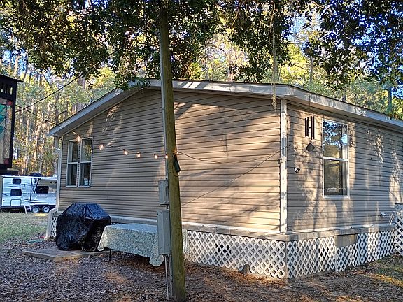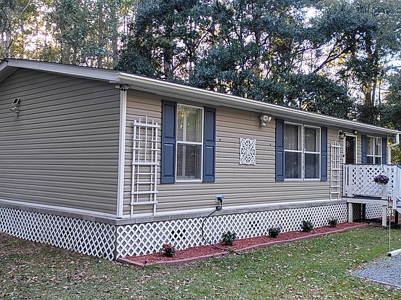 Peaceful, secluded, and surrounded by nature -- just minutes from West Ashley!Just far enough from West Ashley to be peaceful, but still convenient to everything, this move-in-ready 3 bed / 2 bath home sits on over an acre of land and is surrounded by forest on three sides. It offers peace and privacy in a quiet setting with mature neighbors and no traffic noise.A smart floor plan makes excellent use of space, with a large living room, eat-in kitchen, primary bedroom (with full en suite), two additional bedrooms (or home office, gym, etc.), a guest bathroom with shower & tub, and a convenient laundry room.There are handsome interior shutters in all the bedrooms, and energy-saving ceiling fans throughout. The kitchen features upgraded appliances, and allsinks and showers have quality fixtures. And unlike so many soulless gray 'flipper' houses, this is a home with warmth and character. Outside, majestic trees surround the property, providing shady areas perfect for outdoor activities -- or just relaxing in a chaise lounge. There's lots of space for outdoor entertaining and, best of all, for kids and pets to play safely without worry. Approximately 1/3 of the property is cleared, with room for multiple vehicles, boat, RV, large shed, or workshop. There's also plenty of space surrounding the house for flower beds, vegetable gardens, coops, pens, etc. The rest is your private forest: Hunt your own land (deer & turkey), clear a walking trail, or just enjoy seeing nature from your bedroom window each morning. *Less than 5 minutes from Bulow Boat Launch & Poplar Grove Equestrian Center. *Less than 10 minutes to Publix shopping plaza, Walgreens, gas stations, & convenience stores *Less than 15 minutes to Walmart, Harris Teeter shopping plaza, and more *Nearby restaurants & food options include: Angel Oak Restaurant, 17 South Bar & Grill, Kickin' Chicken, Subway, KFC, Dodge's Chicken, Fiore's Pizza, Hibachi Grill, Jeff's Bagel Run, and many more This quality manufactured home is on a permanent, raised foundation and is hurricane strapped into the ground. It is very well insulated and energy efficient. Included features: Bosch Dishwasher New Refrigerator 1200 watt Panasonic Inverter microwave Energy efficient ventless dryer Ceiling fans in living room and all bedrooms And much more! Note: The house is set well back from Moberry Road and the access road off County Line Road is a bit bumpy, but at the end of the drive you'll find a white picket fence and a lovely, peaceful oasis waiting for you to make it your home!