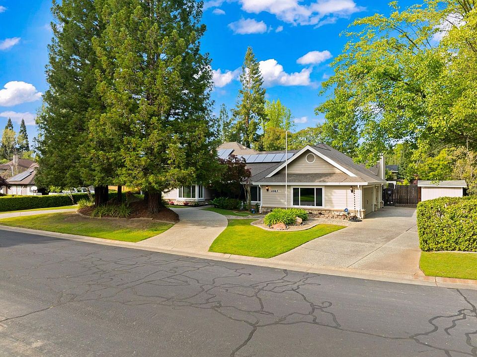 Welcome to 6985 Sandy Creek Ct, a beautifully maintained four-bedroom, 2.5-bathroom home nestled in a beautiful Granite Bay court. Inside, you'll find a thoughtful, spacious, sunlit layout with a practical, charming kitchen complete with pristine appliances, timeless cabinetry, and a central island trimmed with seating-perfect for gatherings! The home includes environmentally-friendly solar panels for both the house and the pool, ensuring sustainability and energy efficiency. This property is equipped with a whole house fan and newer HVAC units. The tranquil master suite and generously sized additional bedrooms offer plenty of room for everyone. Outside, enjoy a private oasis featuring a pool(solar heated), spa, and lush yard ideal for entertaining or quiet evenings. Pool fence included! Situated near TOP-rated schools, Folsom Lake and convenient amenities, this home shows a true pride of ownership. Experience its charm for yourself by scheduling a private showing today. No HOA fees and RV/Boat capabilities add to its appeal, making it an excellent choice for your next home.