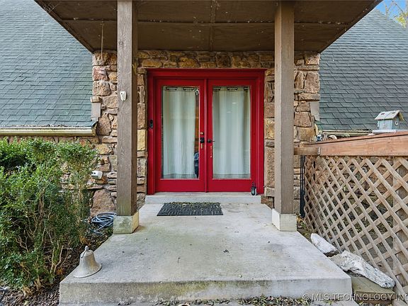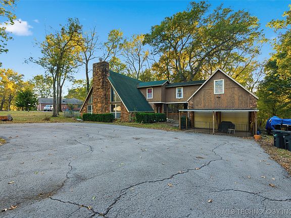 Rustic charm meets lake living! This 3-bedroom, 2-bath custom cabin sits on nearly an acre near Fort Gibson Lake near Whitehorn Cove and minutes from the marina. Built with native stone from the site, it features vaulted ceilings, bonus room, covered deck, patio, and mature trees. Oversized 2-car garage, storage shed, and circle drive add convenience. Perfect blend of privacy, character, and lake access!