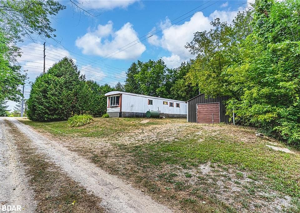 TRANQUIL COUNTRY PROPERTY WITH A MEANDERING CREEK & ENDLESS POTENTIAL! Discover the possibilities on this almost one-acre property, where mature trees provide a scenic backdrop, a creek adds natural charm, and the home sits well back from the road for outstanding privacy. Just 8 minutes to Angus for schools, parks, shopping, dining, daily essentials, and CFB Borden, under 15 minutes to Alliston, and less than 20 minutes to Barrie, this location keeps you close to everything while enjoying a peaceful country setting. A detached garage with parking for one vehicle plus space for four more in the driveway adds practicality. The existing two-bedroom, one-bathroom mobile home offers immediate use or on-site living while you design and build your dream home, making this an excellent opportunity for those seeking a great building lot in a desirable setting.