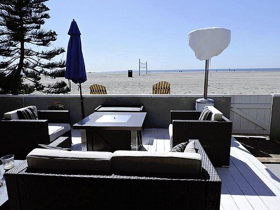 On the sand by Marina del Rey, beachfront, sand level, 3 bedroom, 2 bath bungalow. With floor to ceiling glass, living room walls retract to create a true indoor/outdoor experience to the large beachfront patio at sand level. With sand at your gate, you can't get any closer to the beach. Sand volleyball courts within 40 yards, a bike path within 60 yards, includes use of beach toys and amenities. Beach cruiser bikes and other beach toys available.