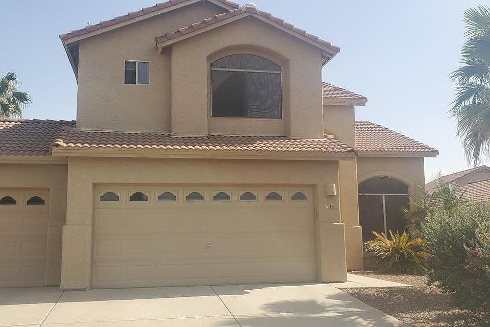 Contemporary home on huge lot with a sparkling pebble tec pool! Plenty of room to roam in this spacious home featuring 4 bdrs, 3 full bathrooms and a 3 car garage! Formal living & dining rooms, family room off the open kitchen with island, recessed lighting, ceiling fans, scored concrete floors, clerestory windows, luxurious garden tub, walk in closet, over 2100sf, one bdr & bath is on the main level+ monthly pool svce pd by owner! Planned community with parks, pools/spa, restaurants, shopping, schools, ball fields, skate park & more! Community is adjacent to ''The Loop'' which features bicycling & walking throughout the Tucson area. Situated near the Premium Outlet Mall, library, movie theatres & easy access to I-10! Pets considered per owner's discretion. Security