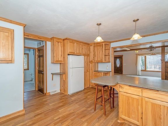 Close country living on 40 acres! This beautiful 5 bedroom, 2 bath home hosts over 2,500 square feet of finished living area. Feel right at home whether you enter through the front covered porch into the living room or through the side mud room with coat closet and wood fireplace. The beautiful hickory kitchen has a great design, lots of counter space, gas stove (with option for an electric hook-up), breakfast bar, and pantry storage. The kitchen opens to the living room/dining area. Also on the main floor is a full bath with laundry area, bedroom, and bonus area (could be converted to an office or additional bedroom). Upstairs are 4 more bedrooms, an additional living space, and 3/4 bath. The basement hosts the furnace (forced air heat on the front part of the house), water heaters, in-floor heat system (for the back addition), and 200 amp electric service. Home is on natural gas, has a mound system (pre-inspected and compliant by Douglas County standards), and well. Pre-inspection report for well, septic, and general home inspection are available. All walls are 6" walls and are well insulated. Don't miss the 30 x 42 garage with 14' clearance in the front and sliding barn doors in the back. There are 2 sheds for storage, partially cut trails through the woods, the start of 2 food plots, a big garden, and a raspberry patch that averages 30-40 quarts/year. This is a gem of a property! Schedule a showing today!