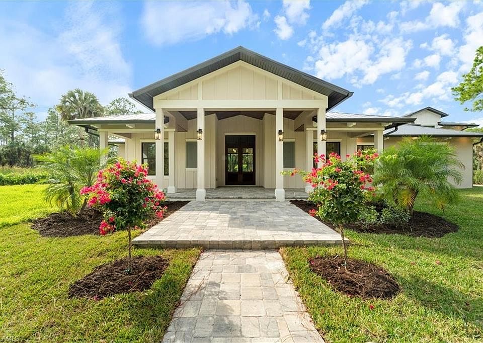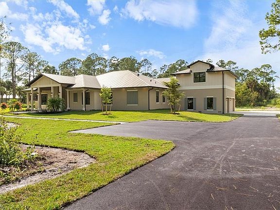 Experience the best of Naples living in this stunning new estate home on 2.5 acres of 100% uplands. Offering 6 bedrooms, 4 full bathrooms, a spacious flex room, and an upstairs bonus room, this 4,640 sq. ft. residence combines timeless craftsmanship with modern design. The vaulted living room with decorative beams, custom lighting and 10’ sliders fills the home with natural light. The living room opens up to an expansive lanai with a sparkling pool and spa equipped with a Pentair system and an oversized patio—perfect for entertaining, al fresco dining and enjoying the beautiful Florida weather. Your chef’s kitchen features custom cabinetry, a Thermador appliance package with dual-fuel range, panel-ready refrigerator, oversized walk-in pantry, and quartz counters. The thoughtful floor plan includes separate bedroom wings, a massive primary suite with a connecting office, and an upstairs bonus room plumbed for a future half bath. Additional highlights include: full-house generator, impact windows (PGT), metal roof, buried gas tank, 3-car garage with room for an auto lift, irrigation system, RO system and gas line ready for an outdoor fireplace or kitchen. Located at the end of a quiet street surrounded by new homes. With 2.5 acres there’s ample space for a future guest house, workshop, or even a pickleball court. Easy access to Vanderbilt Beach Rd Extension, shopping, and top Naples schools!