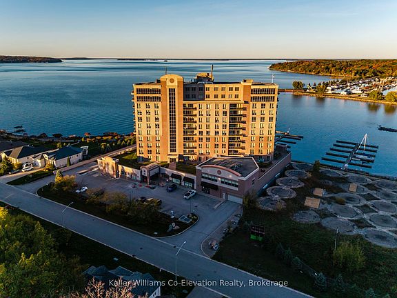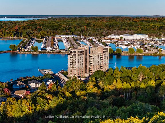 Stunningly Beautiful Panoramic Views of Midland Harbour can be Yours 365 Days of the Year! This Corner Unit has 10' High Ceilings which Combined with Multiple Walkouts & Floor to Ceiling Windows take Full Advantage of the Breathtaking Water Views, right out to the Channel, from all Bedrooms & Living Areas of this Home or Walk Out to one of the Balconies which total over 600 Sq.Ft. for Outdoor Living Space or Summer Parties with a Large # of Guests. This Spectacular Condo Features: 3 Bedrooms, all with Ensuite Baths; Open Concept Living w Ample Space to Accommodate Multiple Living Areas, Dining Room, & Custom Kitchen + a Convenient Laundry Room tucked behind the Kitchen and Heated Sunroom when it is a bit too Chilly to go outside. For those who love to Cook, the Expansive Granite Counters & Cabinets + Professional Grade Stainless Steel Appliances offer Plenty of Room to Create Your Own Gourmet Dinners for Get-Togethers w/ Friends & Family. Retreat to your 532 Sq.Ft. Primary Suite where you will still enjoy Fabulous Views while relaxing in your own Personal Space and taking full advantage of your own Jet Tub or Spacious Shower. The Built-in Organization of the Walk-in Closet is just one more bonus you will not want to live without as well as Numerous Other Storage Opportunities within the Unit and 2 Extremely Large Storage Lockers on Level A of the Building as well as your own Private Double Garage. Tiffin Pier also offers an Abundance of Amenities to take advantage of including: a Lovely Gazebo & Garden Area; a Gym, Endless Pool, Sauna, Hot Tub, a Guest Suite Visitors can Rent for up to 1 Week; & Boat Slips are also available for lease. The Rotary Trail passes right out front where you can Bike and Walk for Miles - If you would like to Boost your Social Life, Join in with a Curated List of Monthly Activities or Enjoy Peace & Relaxation within your own Space. If this sounds like the Lifestyle for you, don't wait or you might miss this Incredible Opportunity..