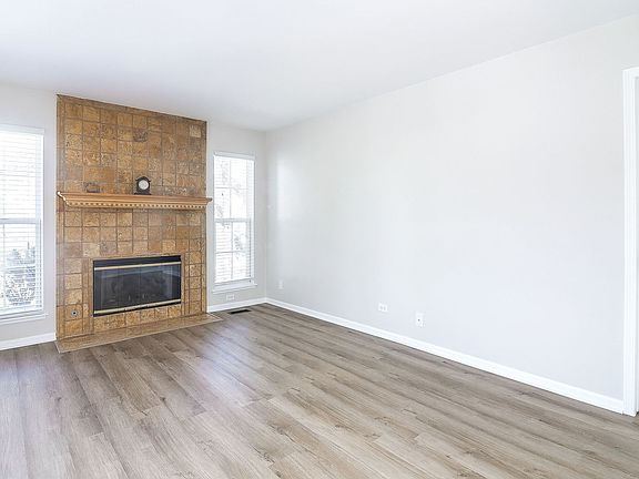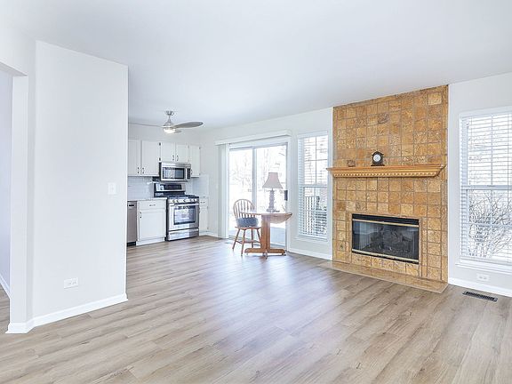 Be the first to live and enjoy this updated ranch townhouse end unit just updated in 2025 for its next owner! This one level living is rarely available. The home boasts luxury vinyl plank flooring throughout, family room with fireplace, separate living room and dining room. Primary bedroom with vaulted ceilings and new bathroom, and WIC. The secondary bedroom is separated from primary and has its own full bathroom to use. A laundry room in unit, perfect for extra space. The two-car garage, and end unit views makes for a relaxing and spacious use of space to live in. Close to shopping, restaurants, interstates, trains to commute into the city and more.