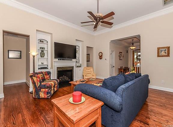 Open the door & you will want to stay. Impressive entryway w/ heavy molding & trey ceiling. Soaring GR w/ built in's, fp, & glass doors leading to covered patio overlooking 13th fairway, DR offers trey ceiling & lots of molding, an elegant setting for those who prefer entertaining. Eat in kitchen w/ double ovens, granite, island, cherry cabs... a cook's dream! Restful owner's suite w/ relaxing spa BA. Bonus Room w/ bath. Irrigation, crawl space makes perfect workshop, Super Convenient Location!