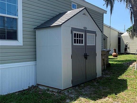 MOTIVATED SELLER!! Best of Both World's, a Tiny home plus you own your real estate. This is a highly desirable 55+ Bonfire Community with LOW HOA FEEs of $250/monthly. This beautiful compact home has energy efficient double pane windows, with blinds. It has dry wall walls with crown molding through out as well as 9" ceilings and a tray ceiling in the living room. All kitchen cabinets have soft close doors and drawers with Whirlpool appliances and washer/dryer. It also includes a gated storage for boat trailers and RV's. Situated on Haines Creek connecting to the Chain of Lakes. Boat slips for lease are on a first come first serve basis. Clubhouse serves as the hub of the community. It includes a full kitchen, library, coin-operated laundry, billiards, shuffleboard courts, and a sundeck with a covered heated pool. Pet friendly park located conveniently near restaurants, shopping, movie theater and medical facilities. Leesburg and the neighboring towns host festivals such as BikeFest, Antique Shows, Georgefest, etc. This move in ready property, with all brand new furnishings is a must have. Price includes $23,000 shares.