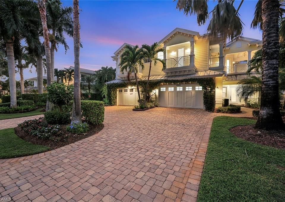Experience refined coastal living in this light and bright four-bedroom, five-and-a-half-bath residence, ideally situated in a prime Naples location within the prestigious MOORINGS COMMUNITY. This two-story duplex masterpiece—complete with a private elevator—effortlessly combines timeless sophistication with modern comfort and peace of mind, being located in the preferred X-FLOOD ZONE. Bathed in natural light, the spacious interiors feature soaring ceilings, elegant finishes, and seamless indoor-outdoor flow, creating an inviting setting for both everyday living and entertaining. The gourmet kitchen opens to expansive living areas leading to a private outdoor retreat with a sparkling pool, spa, and enclosed backyard. The luxurious primary suite offers a spa-inspired bath with dual vanities, a walk-in shower, and a generous walk-in closet. Upstairs, a comfortable sitting area with a wet bar and a large guest suite provide the perfect space for visitors or family. Enjoy exclusive private beach access just moments away, along with proximity to Naples’ best dining, shopping, and Gulf beaches. A rare find, this home offers exceptional size, luxury, and location—an incredible value for The Moorings and a true showcase of Naples living at its finest.