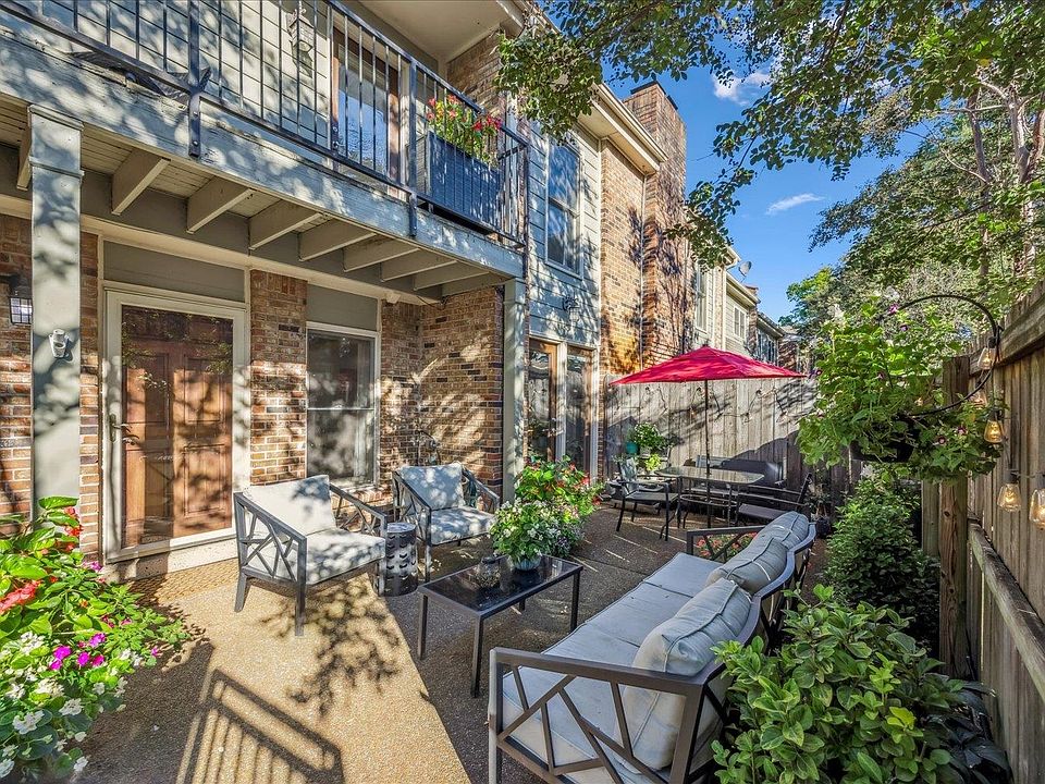 Gated in Central Gardens! One of the largest units available featuring 2 bedrooms, 2.5 baths, a gorgeous private fenced and landscaped patio, and a balcony. Includes over $35k in updates: primary bathroom renovation (expanded footprint, walk-in shower, new vanity & lighting – 2021), interior and exterior paint (2022), new outside compressor with added returns upstairs (2022), kitchen updates with new countertops, backsplash, and French door (2023–2025), new carpet upstairs (2025), and dryer vent connection repair with freshly painted downstairs ceilings (2025). The kitchen offers quartz countertops, stainless steel appliances, smooth cooktop, pantry, breakfast bar, and laundry closet. A cozy hearth room with fireplace is currently used as a dining room, while the spacious 10x9 entry can serve as a dining area or office. Upstairs, the primary suite features two large closets, a private full bath, and a versatile 12x11 bonus room—perfect as an office, exercise room, or sitting area.