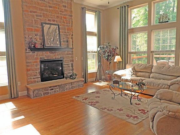 Lakeside Retreat; Two tier deck with natural gas outlet; Fishing in stocked lake; Open floor plan; Gourmet kitchen w/SS appliances; Stunning stone fireplace w/flanking windows; Tons of natural light. Gleaming hw floors; 12 ft ceiling.