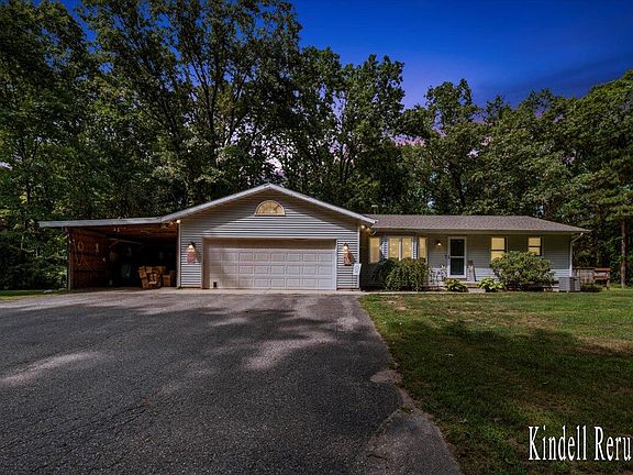 Escape to 4.6 private acres—perfect for hunting, homesteading, or simply soaking up nature. This ranch-style home offers main floor living with a bright kitchen, oversized walk-in pantry, dining area, and screened porch. The main level includes a bedroom, full bath, and laundry, while the walkout lower level features new carpet, 2 bedrooms, a bath, and bonus rooms for hobbies or office space. Watch wildlife from your hot tub, deck, or porch. Two sheds plus a garage lean-to provide storage for equipment, ATVs, or tools. A peaceful retreat with endless possibilities—bring your homestead dreams to life! Chickens are allowed! Pre-approved buyers only!