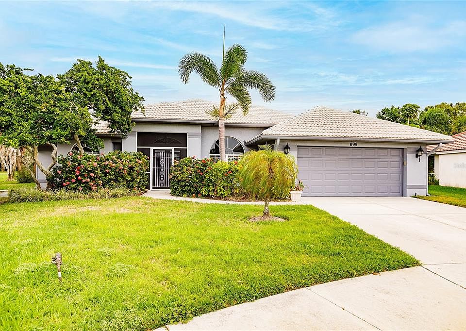 Absolutely Stunning Completely Remodelled 3 Bedroom 2 Bathroom Pool Home in Beautiful Lakes of Jacaranda. This popular Cayman Great Room model by J & J sits on a quasi-cul-de-sac on a very private oversized lot. At nearly 2,000 square feet, its open floor plan lives large, enhancing the sense of space in this attractive home. Most of the rooms effortlessly radiate out from the 19’ x 26’ Great room with vaulted ceiling and sliding glass doors. New Tile Flooring Throughout, Recently Remodelled Kitchen including Stainless Steel Appliance, Quartz Countertops, Tile Backsplash, Completely Remodelled Bathrooms, Entire Exterior has been freshly painted, Pool Cage has been recently re-screened and re-painted, New Pool Pump 2021, New Irrigation Well Pump 2019, and more. The community of very well built homes in The Lakes of Jacaranda offers low annual fees, including a clubhouse, community pool, tennis courts and walking trails. Venice Island, its quaint shops, restaurants, beaches, bike paths, golf, fishing, boating, cultural and performing arts centers, and medical facilities are just minutes away.And the best part is Low HOA Fees!, No CDD Fees!, and Not in a Flood Zone!