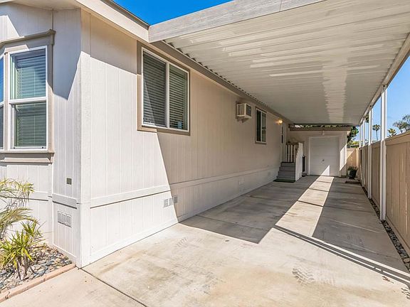 Tucked away in a peaceful corner of a beautifully maintained community, this charming home offers the best of relaxed coastal living just 0.4 miles from Beacons Beach. Perfect for beach-loving couples or anyone who craves the sand and sea, the location alone is hard to beat but it’s the thoughtful touches throughout the home that truly make it special. Step inside to discover a spacious, open-concept kitchen with bar seating that flows seamlessly into a light-filled living area, where large windows invite in the golden California sun. Whether you're entertaining or enjoying a quiet morning coffee, this space feels effortlessly welcoming. The bedroom retreat is generously sized and equipped with both a ceiling fan and AC wall unit, ensuring comfort year-round. A stacked washer and dryer tucked into a convenient laundry closet keeps daily chores simple and efficient. Recent upgrades include a nearly new water heater, updated plumbing fixtures, and wood blinds throughout, giving the home a fresh, modern feel while maintaining its coastal charm. Outside, the low-maintenance landscaping surrounds a private patio and deck, ideal for sunset dinners or surfboard waxing sessions. There's also a large shed perfect for storage or a weekend workshop and an attached carport with two parking spaces, plus three visitor spots conveniently located right next door. Set within a friendly, all-ages park with a clubhouse, pool, and recreation room, you'll enjoy a true sense of community without the burden of HOA fees. With restaurants, shopping, and freeway access nearby, this home is the perfect blend of tranquility and convenience. To make it yours, buyers must qualify with 3x the monthly space rent. This is more than a home t’s a lifestyle. Peaceful mornings, surf-filled afternoons, and the comfort of knowing you’ve found your own little piece of Encinitas paradise.