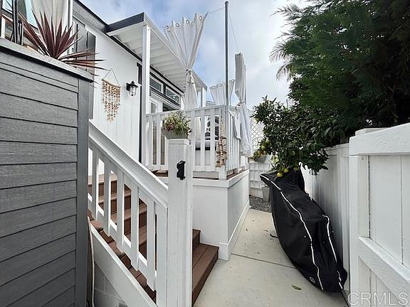 You do not need much more than this PERFECT, beautiful beachside home in Leucadia. Built in 2020, this stunning 1-bedroom, 1-bath manufactured home is just a short walk to the beach and ready for you to move right in! Enjoy modern upgrades throughout, including transom windows, 2” blinds, and elegant French doors with built-in blinds that open to a private outdoor deck with seating and storage. The home features soaring ceilings that create a bright, open, and spacious feel, complemented by lots of windows which make this home light & bright. Step outside to your landscaped garden area, perfect for relaxing or doing a little gardening. A covered carport offers convenient parking and shade. The Riveria community includes fantastic amenities such as a clubhouse with a game room and multi-use space and community pool. Located in the highly desirable town of Leucadia, you’ll be within walking distance of the beach, Farmer’s Market, and an array of local dining, shops, coffee spots, wineries, and surf shops. Monthly space rent is $2,030. No rentals of any kind allowed. Don’t miss this opportunity to own a bright, modern coastal home in one of North County’s most sought-after beach communities!