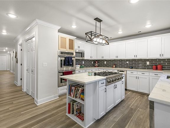 Elegant builders home on 1.83 acres! 2755 square feet with 4 bedrooms and 2 and 1/2 baths. Luxuriously remodeled! Gourmet kitchen with rare granite counter tops, custom cabinets, Kitchen Island has a 6 burner gas cook top stove. Also features double ovens, a full back splash, large pantry and unique breakfast bar. Large living area with stunning fireplace wall that incorporates a wood burning fireplace. All rooms have Crown molding and Custom LED lighting throughout. All new paint and Flooring. French doors in kitchen opens up to a large patio. Privacy fenced In ground swimming pool with adjacent changing rooms, with half bath, and water slide. Level yard that's fully landscaped and a 3 car garage with custom doors.