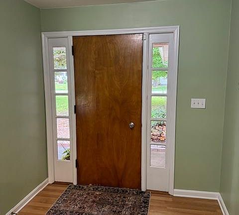 Large Corner Lot with NO HOA Fee! This home has almost a half acre corner lot on a quiet street. Covered porch with built-in brick planter and established shade trees offer an inviting curb appeal. Front entrance leads in to spacious foyer with a kitchen offering plenty of cabinet and counter space. Kitchen has recently been update with several new appliances and Butcher Block Countertops. Kitchen is open to an attached Dining Area, and also an attached porch which includes a laundry area. This area has its own electric baseboard heating. Bedrooms have original hardwood flooring. Living Room and Hallway has carpeting which can easily be upgraded, and tile floors in the bathrooms. There is a full dry basement with high ceilings that can provide extra living space if you wanted to finish it off. Bilco walk-out stairs to the back yard provides easy access. Attached two car garage and paved driveway. Gutters have gutter guard installed. There is tree lined privacy in the back yard of the home behind this property. There is a fairly new HVAC system located in Attic space above the garage. There is also a commercial dehumidifier installed in the basement that keeps humidity down. This one will not last long Folks!