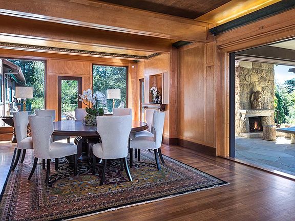 This historical home designed by Bernard Maybeck is a truly superb volumetric composition enhanced by its setting. The great room is the heart of the home with white birch walls, oak floors, grand fireplace, and silk paneled ceilings. Set on approx. 4.6 park like acres, featuring lighted tennis court, pool, covered patio, and pergolas, spectacular rose garden and mature fruit trees.