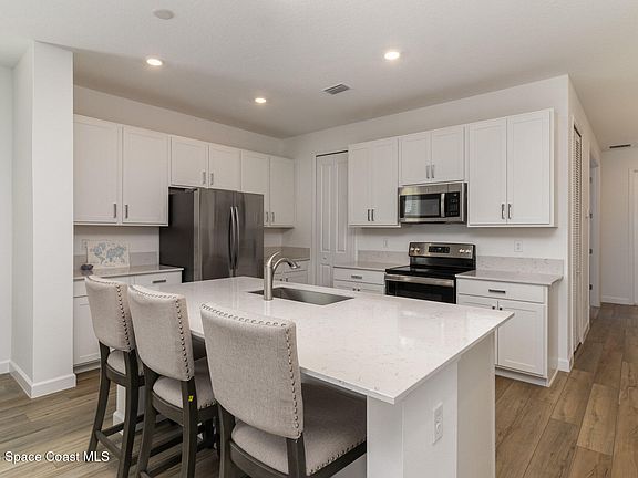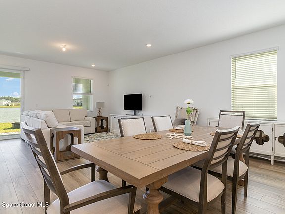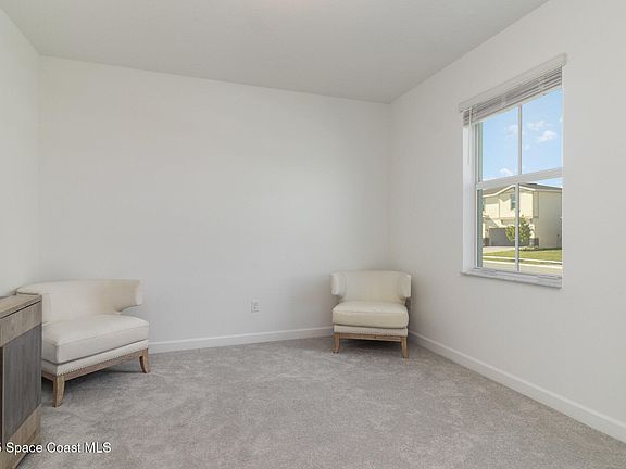 Wow, you have to see this one! This nearly new, waterfront 5-bedroom PLUS den home is available for move-in November 15. The open floor plan lets you live large with plenty of room for lounging and entertaining. The palatial first-floor primary bedroom overlooks the lake and flows through to a sparkling ensuite bath & huge walk-in closet. Upstairs there is a second family room and 4 more spacious bedrooms. First class finishes throughout - quartz countertops, marble windowsills, 42'' cabinets and impact windows (for quiet, efficiency & easy storm prep). NO CARPET - new luxury vinyl plank will be installed throughout prior to lease start. Pets welcome on a case-by-case basis. Lawn care included. Community Pool a short walk away. The neighborhood has fun community events & movie nights planned throughout the year. Easy access to Melbourne via St. John's Heritage Pkwy, tons of shopping and dining within 10-15 minutes. Publix is opening 1 mile away!