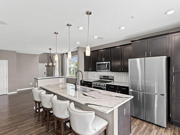 Beautifully updated end-unit in the highly sought-after Blackstone Ponds neighborhood! Enjoy the open flowing floorplan with light + bright spaces, upgraded kitchen with sliding door that opens to the deck, creating the perfect blend of indoor and outdoor living! The spacious upper-level features the large primary suite with walk-in closet and spa-like bath with dual vanities; two guest bedrooms + guest bath and laundry room. The walkout lower-level offers a family room, guest bedroom and plenty of storage space! Premier ISD 196. Quick access to shops, restaurants, highways and MSP airport. Pre-approval required must accompany showing requests.