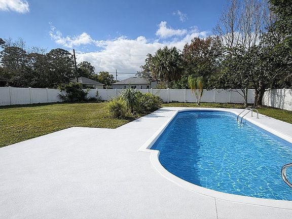 Step outside to your Florida paradise, huge backyard privately fenced with white PVC fence, large 28' pool with new pool pump and brand new ext electrical panel!