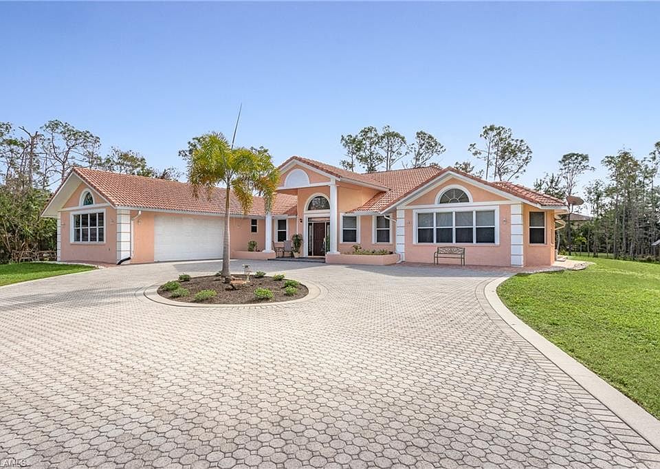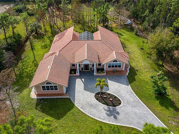 THIS SUPERIOR LIVINGSTON WOODS ESTATE HOME HAS IT ALL! LOCATION, LOCATION, 2.5 ACRES OF LAND, SOLID BLOCK CONSTRUCTION, OVER 3300 SQ FT WITH S EXPOSURE! Located in one of the most desirable non-gated neighborhoods in Naples! Enormous Great room, bathed in natural light, with timeless natural Travertine flooring through living room, kitchen and bathrooms and engineered hardwood flooring in all bedrooms. Gourmet kitchen with Custom, solid cherry cabinetry and SS appliances, 2 sinks and center island that houses a Jenn-Air downdraft range. Granite counter tops throughout. Enjoy quiet evenings gazing at the stars from the incredible screened center courtyard, that can be accessed from all rooms. Perfect 2.5 acres lot offering ample space for pool, guest house, stables etc. Circular paved driveway in proximity to the home, and cement driveway to main road and guest parking. Quiet and serene, away from roads, yet so close to all that Naples has to offer, great schools, shopping and entertainment and best of all just 4 miles to white, sandy beaches. This superior home must be seen to be fully appreciated! Until then, please view the incredible walk through video!