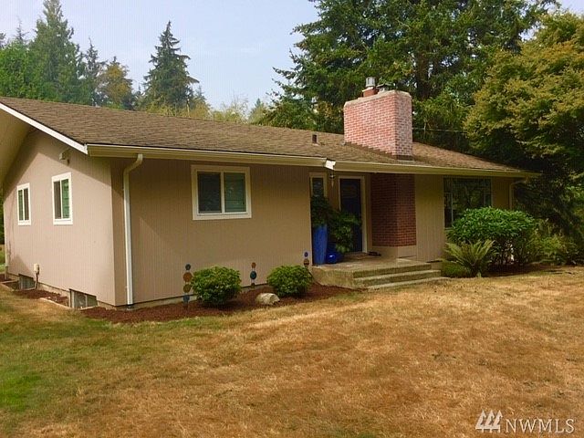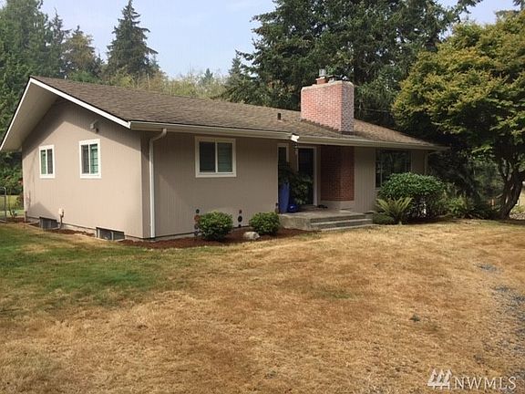 Lock box on back door. Location, location for close access to ferry, shopping, small town amenities. Older, but nice home.with hardwood floors, beautiful entry door. Nice deck off dining area.Large 36x36 3 bay shop... 3 bedroom,1 bath up. View of sound , night lights from living room. Propane fireplace.1221 sq.feet upstairs.Basement roughed/framed in for family room, bath & exterior access, finish off utility room, plus lots of storage area.Garage. Fruit trees, all on 5 acres.