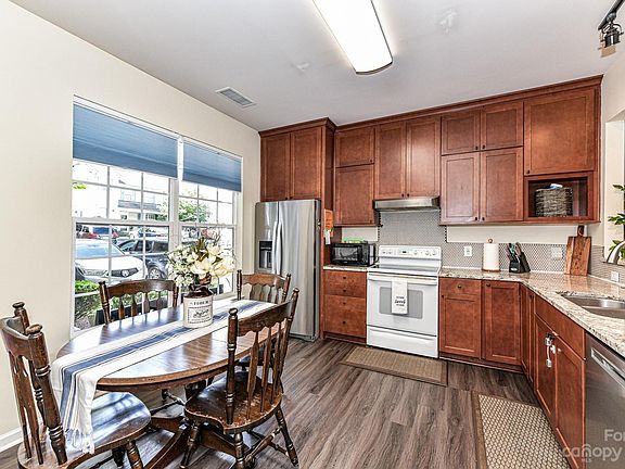 Amazing location, rich amenities, AND great schools! Your new end unit, updated townhome awaits. Recently renovated kitchen with 42" cabinets, granite countertops. Open flow of downstairs from eat-in kitchen to oversized living room. Neutral paint, newer carpet, cozy gas fireplace. Newer double sliding doors leads to nature-lovers' backyard. Wait for the deer to meander across your corner lot! Set up your work-at-home station under the built in bookshelves. Upstairs 3 bedrooms with walk-in closets, convenient laundry. Large primary suite overlooks wooded backyard. Enjoy all the amenities that Beverly Crest has to offer! 20 minutes to Uptown, 12 minutes to South Park, 4 minutes to Arboretum. Welcome home!!