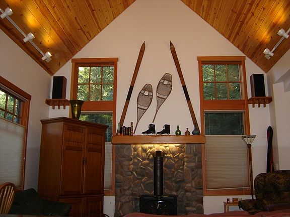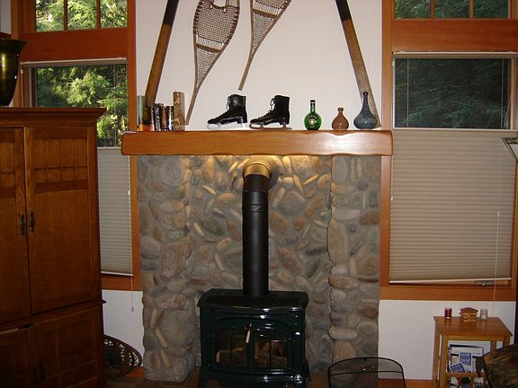 - Fireplace features: wood stove