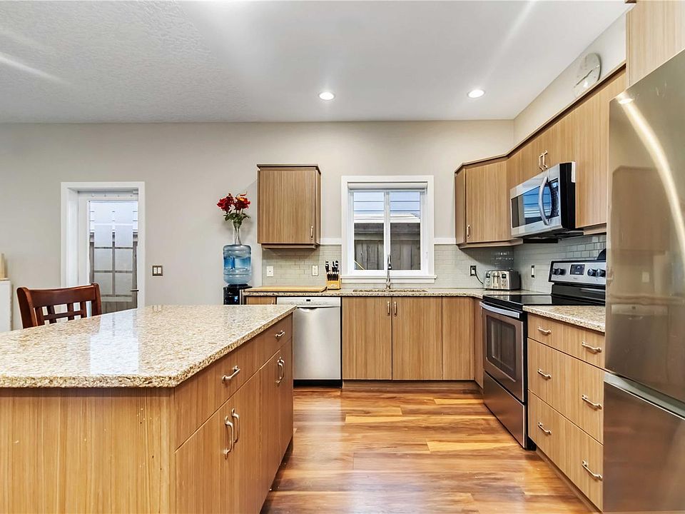 $112,000 BELOW assessed value! Beautiful 3 Bedroom, 3 Bathroom Rancher in Desirable Leeward Cove at Whiffin Spit. This stylish and comfortable 2014-built rancher offers over 1,500 sq. ft. of well-designed one-level living. The expansive open-concept layout features a spacious great room with a stunning kitchen, granite countertops, ample cabinetry, and an adjoining dining/living area—ideal for both entertaining and everyday living. The generous primary suite includes a walk-in closet, a 4-piece ensuite, and sliding door access to the private, fully fenced backyard with a newly built 6X10 shed! Two additional well-sized bedrooms are complemented by a main 4-piece bath and a convenient powder room. Located just steps from parkland trails leading to the scenic shores of Sooke Harbour and only a 10-minute walk to the marina. Additional features include a heat pump, heated crawlspace, wired in generator for house, single-car garage, and proximity to schools, shops, and more.