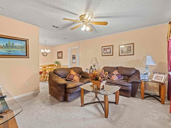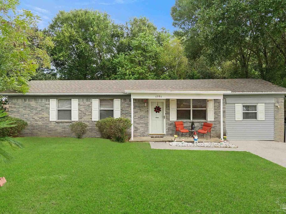 Discover the perfect blend of comfort, functionality, and privacy in this all-brick 3-bedroom, 2-bath home. Ideally situated backing up to a serene 65-acre parcel, you’ll enjoy added seclusion and peaceful views right from your backyard. Inside, the open-concept family room, dining area, and kitchen flow seamlessly together, filled with abundant natural light from large windows and glass doors. The converted attached garage provides heated and cooled additional living space—perfect for a home office, playroom, or media area—and includes an extra-large utility room with indoor laundry. Each secondary bedroom features plush carpeting and generous storage space. The spacious primary suite easily accommodates a king-sized bedroom set and includes a refreshed ensuite bath with a tub/shower combination, updated vanity, and modern flooring and fixtures. Step outside to enjoy an expansive covered patio—ideal for evening relaxation or summertime barbecues. The fenced backyard is perfectly sized for low-maintenance living, while the detached storage shed offers plenty of room for yard tools and seasonal décor. Don’t miss the opportunity to make this inviting home yours—schedule your tour today!