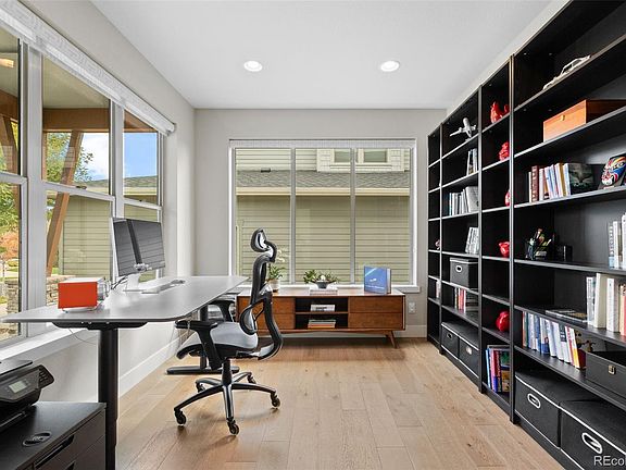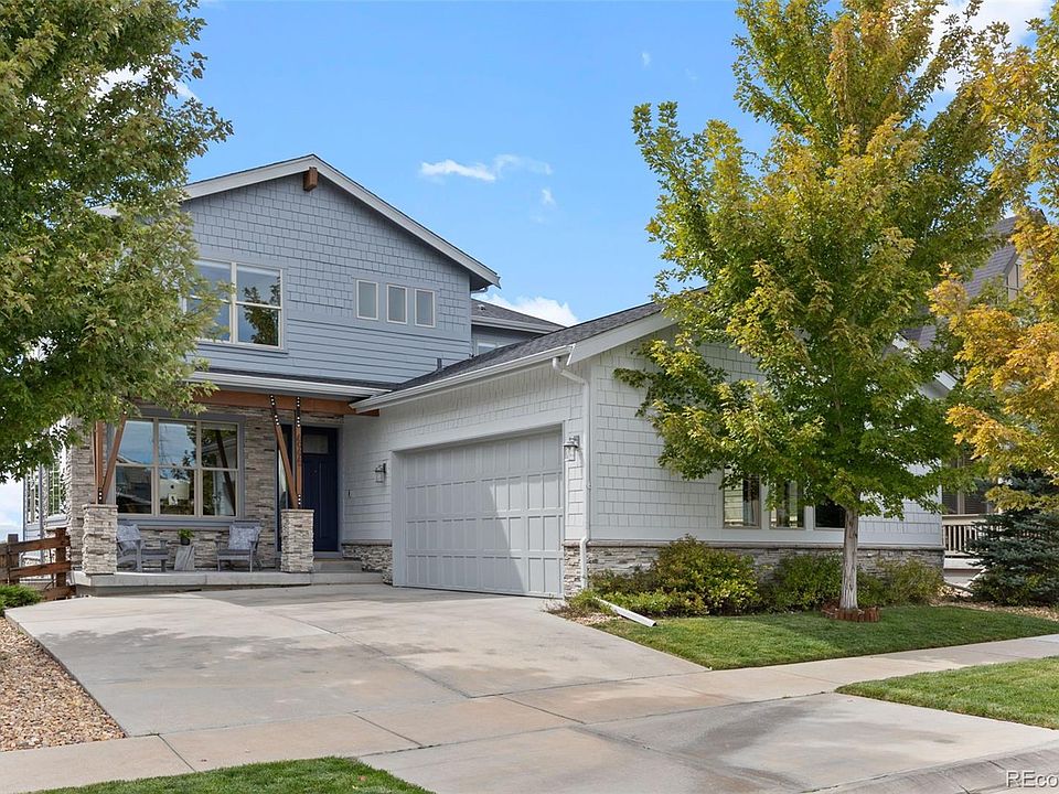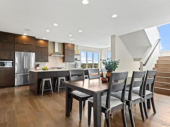 This amazing home sits high above it all with commanding, unobstructed mountain views. Truly a best-in-class property and location. Finished walk-out basement backing to greenbelt. Premium home, lot and builder. This home is in a small enclave of high-end Brookfield Residential homes. Not your run-of-the-mill architecture and “builder grade” feel. Super stylish modern farmhouse look. Over $110k in builder upgrades. Perfectly maintained and shows like new. The interior features an open, modern design. Engineered wood floors throughout the main level, open staircase, loft and upstairs hallway. $40k in flooring upgrades. Superb Kitchen featuring oversize island, quality stainless appliances, gas range with range hood, upgraded cabinets, counters and fixtures. Soft close hardware. Pantry closet. The kitchen is flooded with light, and is open to the sitting area and living room. The living room features a gas fireplace, and oversized sliding door with fantastic views. The 3 story, open staircase is amazing; providing light, mountain views, and an open feel unmatched by typical designs. Wood stairs throughout. Fantastic primary suite with tons of light and mountain views. The bath features a huge double shower, upgraded tile and fixtures throughout. Walk-in closet with built-in organizers. The upstairs also features an oversized loft, with mountain views. Upstairs laundry. The basement was finished by the builder. High ceilings, tons of light. Excellent multi-gen space. Bedroom and 3/4 bath. Wonderful outdoor spaces: Covered front porch, covered deck with amazing views, second deck on the side of the home (with plumbed gas BBQ), and covered patio off the walk-out basement. High efficiency HVAC and tankless water heater. Steam humidifier. Solar system is included. Exterior paint 2024. Too many features to list. Perched up high, with endless sky, mountains and breathtaking sunsets. It all comes together in this amazing home.