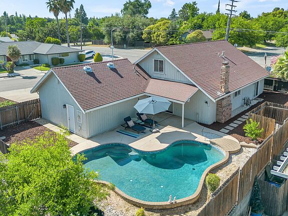 Best priced home in this adorable Lincoln Creek Circle neighborhood. Highlights include a main-floor primary bedroom, two living areas, indoor laundry, updated kitchen with quartz kitchen counters, updated bathrooms, soft-close drawers, built-in microwave, side-by-side refrigerator, Samsung "silent" dishwasher, Hunter Douglas blinds, waterproof laminate flooring, and nearly new carpet. Step outside to your private pool (no neighbors looking down on you) with a 2024 solar skimmer and newer pump. The garage offers EV charger wiring, and shelving. Refrigerator, washer, and dryer all convey! With multiple possible RV parking options, garden space, close proximity to the American River Parkway, and just a few short blocks away from the Glen Oaks Swim & Tennis Club, this beautifully updated 4-bedroom, 2.5-bath home offers 1,924 sq ft on a spacious 0.23-acre corner lot. Check out the virtual media and ask your agent for the full Features & Updates list.